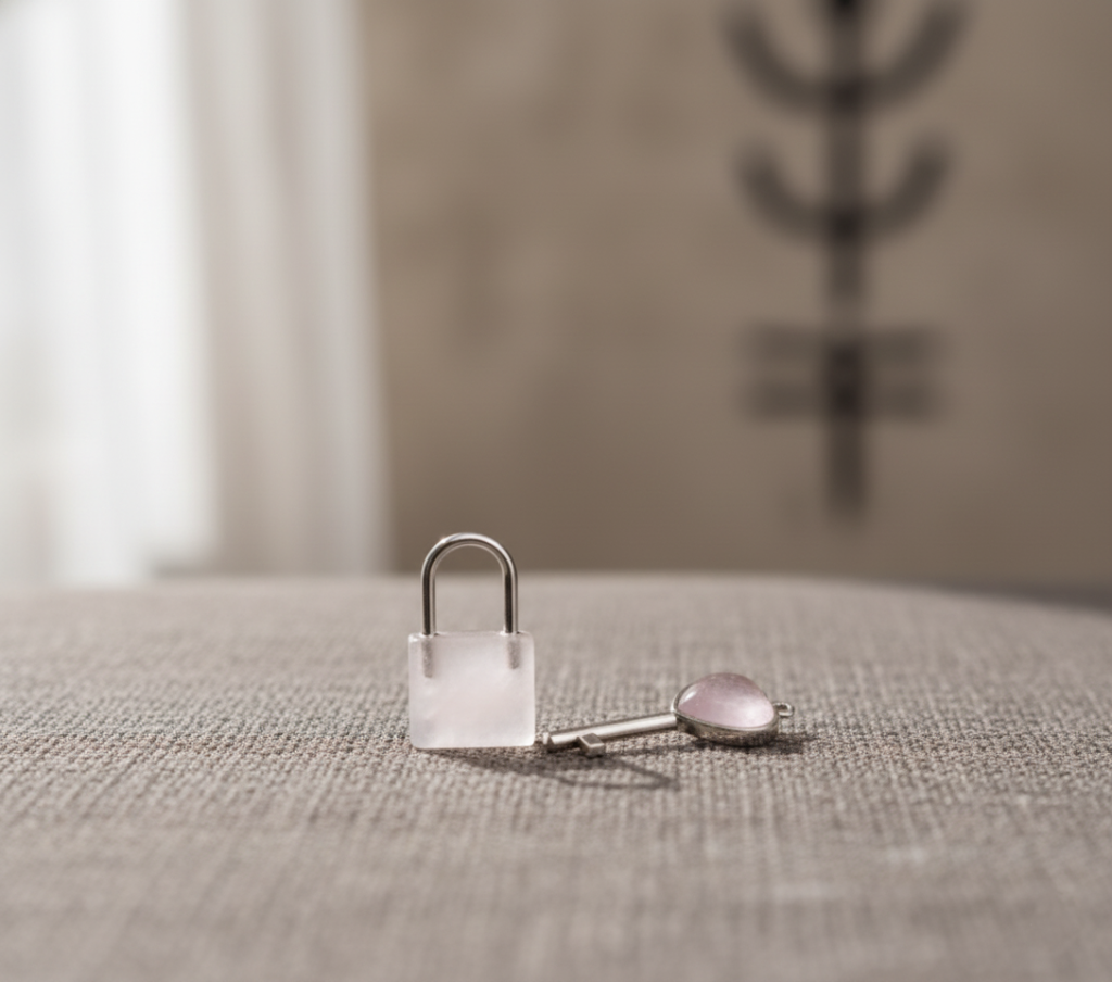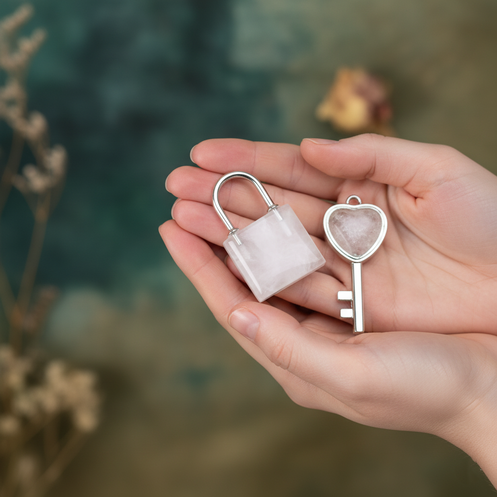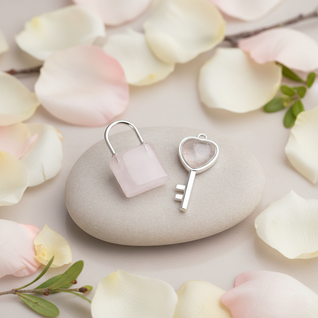 Amulet Miłości – klucz i kłódka z różowego ametystu to mistyczny talizman otwierający serce na miłość i zaufanie. Symbolizuje połączenie dwóch dusz, związek oparty na szczerości, czułości i wewnętrznej równowadze. Energia różowego ametystu wspiera uzdrawianie emocji, odpuszczenie przeszłości i przyciągnięcie czystych, harmonijnych relacji.