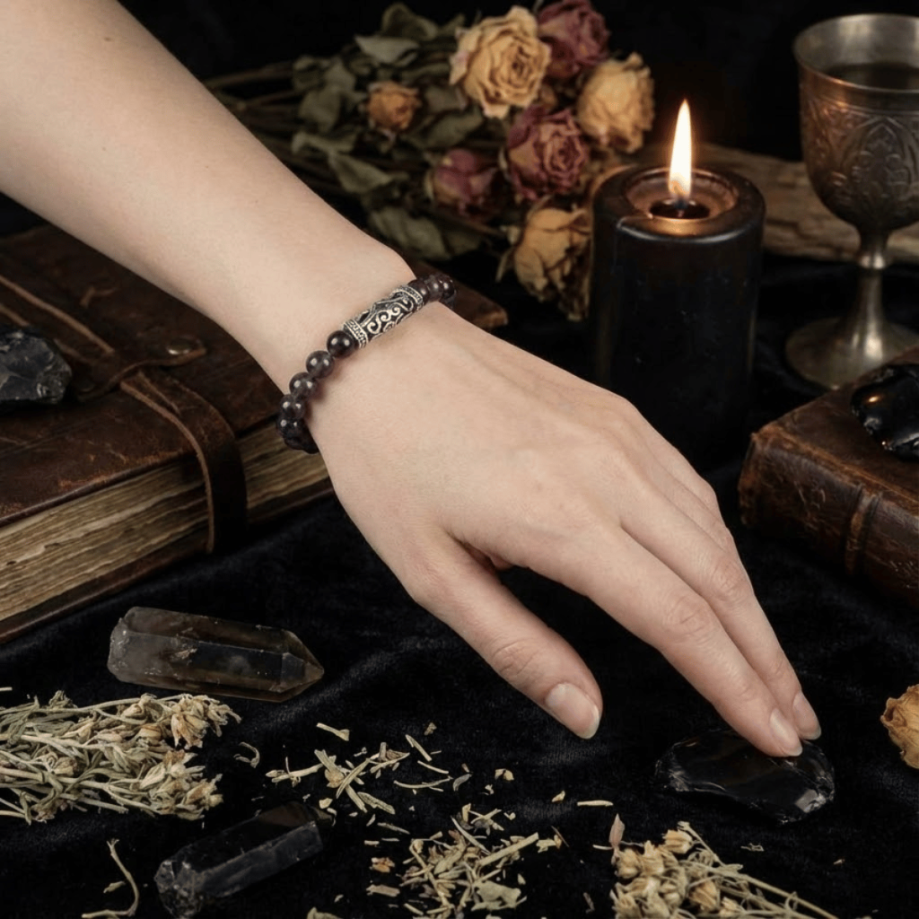 Wyobraź sobie, że srebrny, rzeźbiony element pośrodku bransoletki to brama do Twojej wewnętrznej świątyni. Gdy czujesz, że stres przejmuje kontrolę, spójrz na ten starożytny wzór. Niech przypomni Ci on, że Twoim naturalnym stanem jest harmonia, a chaos jest tylko chwilowy. To biżuteria, która uczy sztuki odpuszczania.