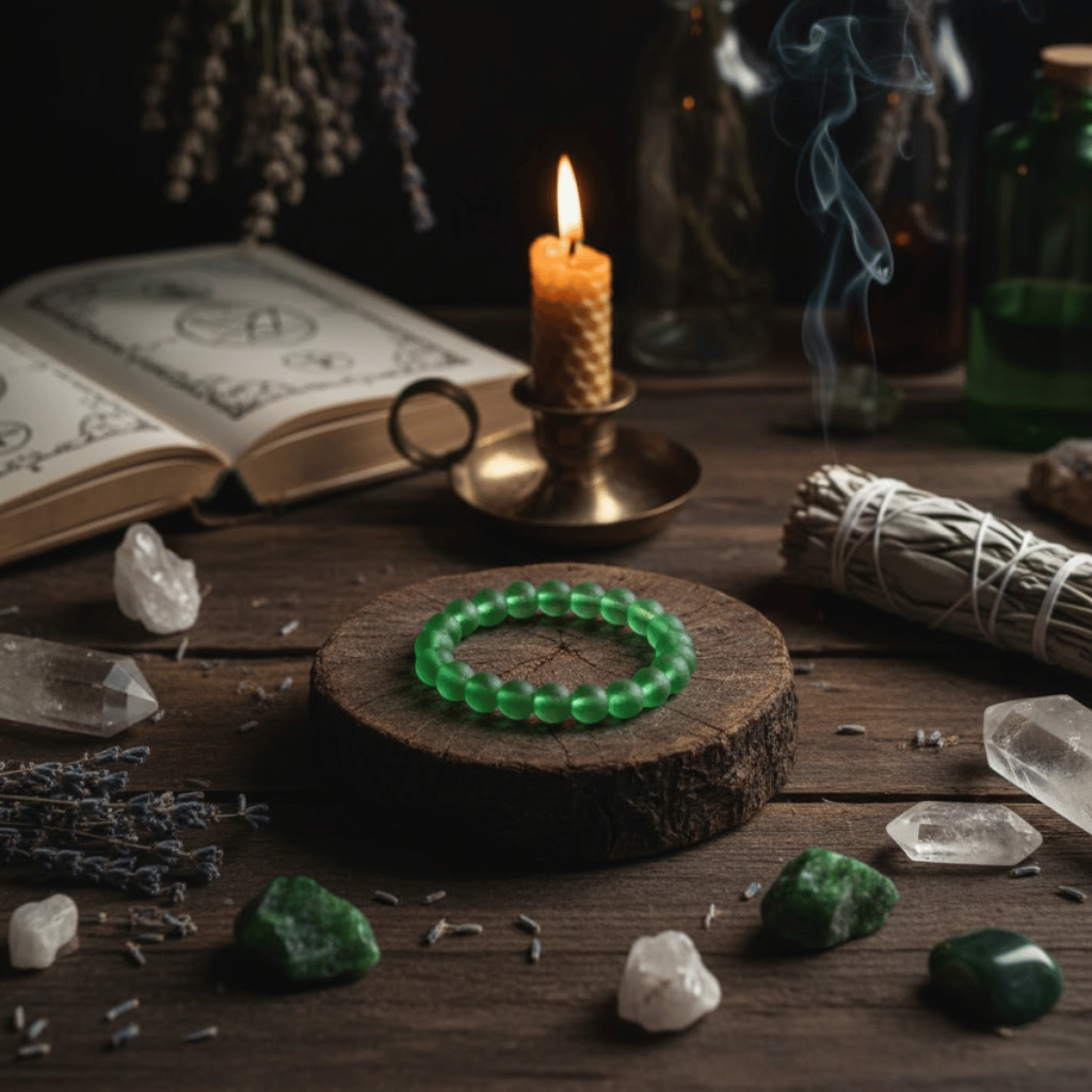 Jest to idealny amulet dla zodiakalnego Byka. Byk to znak Ziemi, który kocha naturę i luksus spokoju. Ta intensywna zieleń jest dla niego naturalnym środowiskiem. Choć koraliki są „kosmiczne”, Byk odnajdzie w nich energię odradzającej się wiosny. Matowa faktura szkła jest niezwykle przyjemna w dotyku – a Byk to znak zmysłów. Noszenie jej to dla niego forma terapii dotykiem, która uziemia i relaksuje.