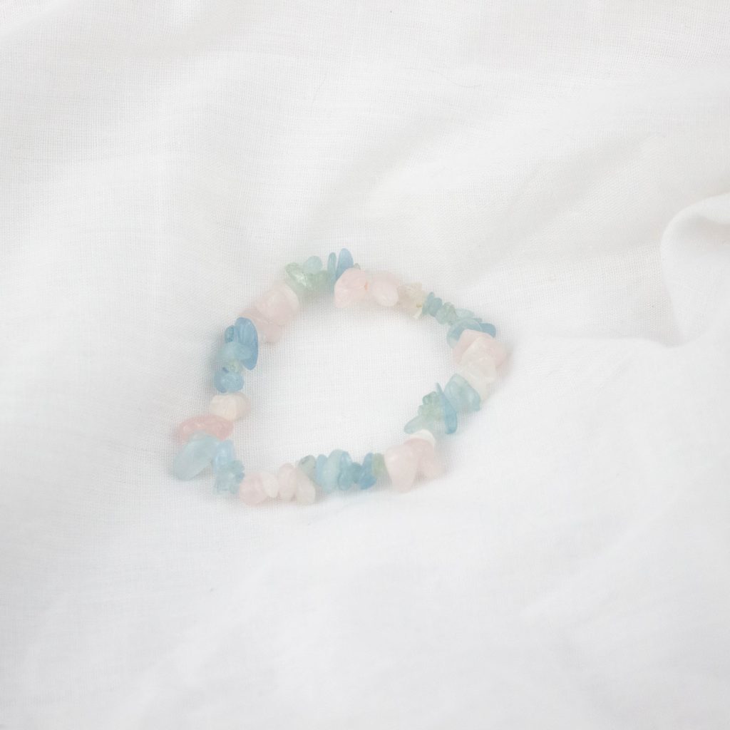 Niech ta bransoletka z akwamarynu i różowego kwarcu górskiego będzie Twoim codziennym towarzyszem, przynoszącym harmonię, spokój i energię miłości. Niech pomaga w procesie oczyszczania aury, uzdrowieniu emocjonalnemu i w wzmacnianiu poczucia miłości do siebie i innych. Niech stanie się symbolem wewnętrznej równowagi, która wprowadza do Twojego życia spokój, miłość i poztywne wibracje każdego dnia.