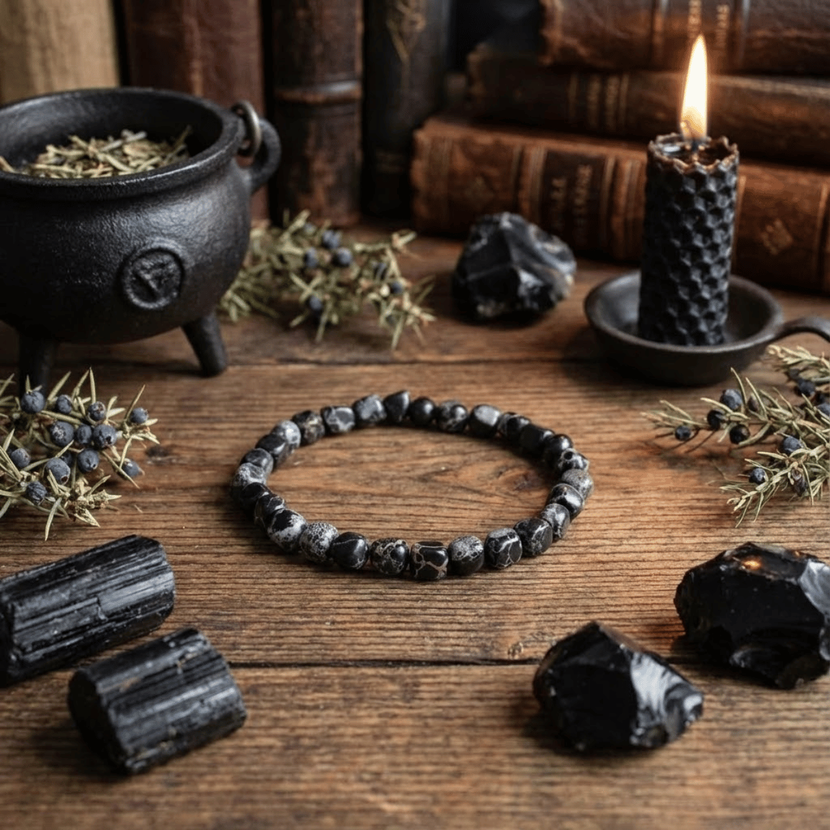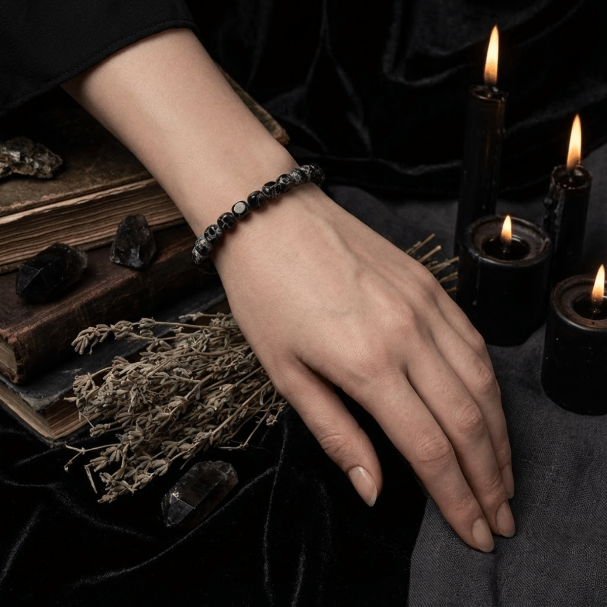 Wyobraź sobie, że ta bransoletka to Twój prywatny ochroniarz, który nigdy nie śpi. Jej mroczny, hipnotyzujący design sprawia, że energia wampirów energetycznych i toksycznych ludzi odbija się od Ciebie jak od lustra. Noś ją, by czuć się niewidzialną dla zła, a jednocześnie potężną i obecną w swoim ciele.