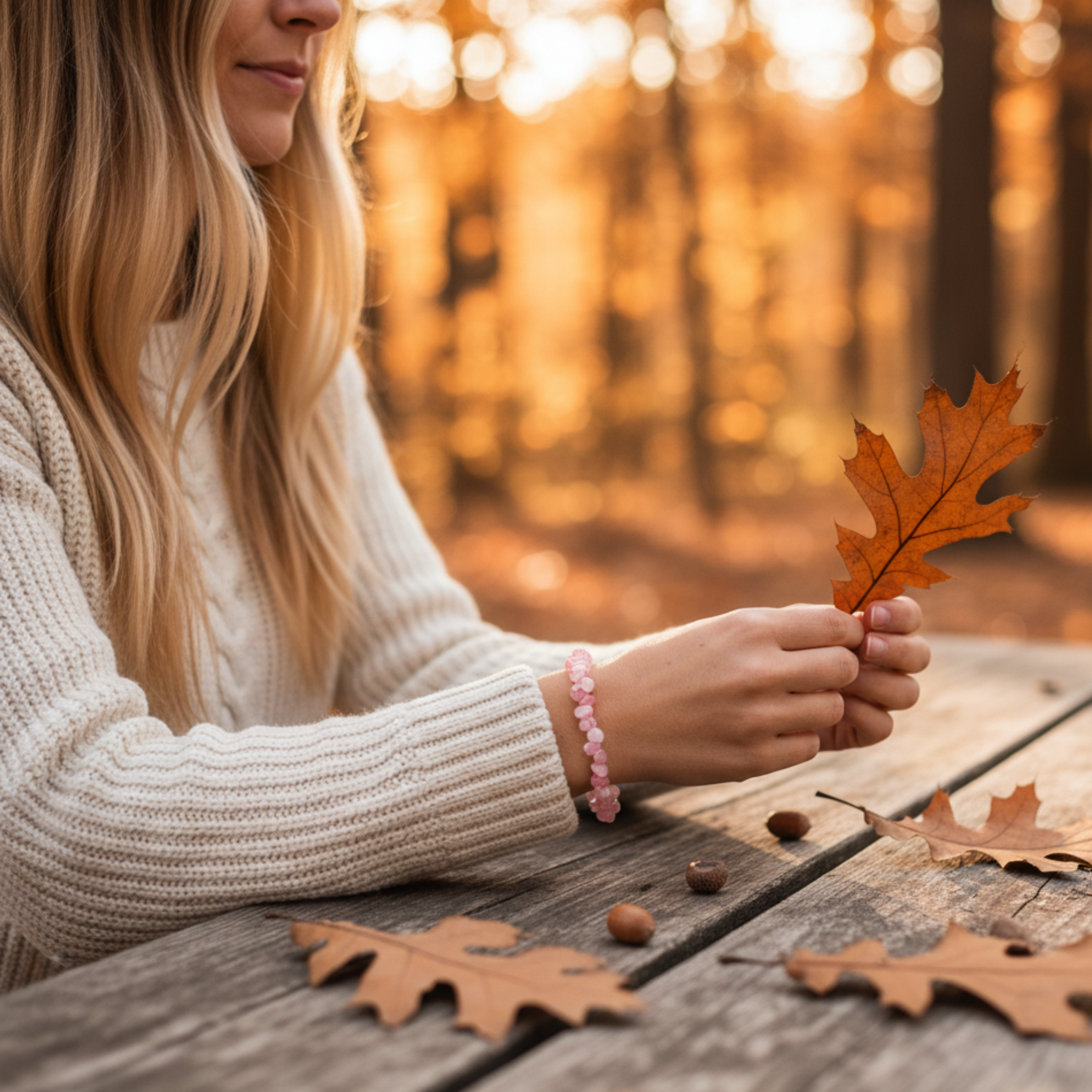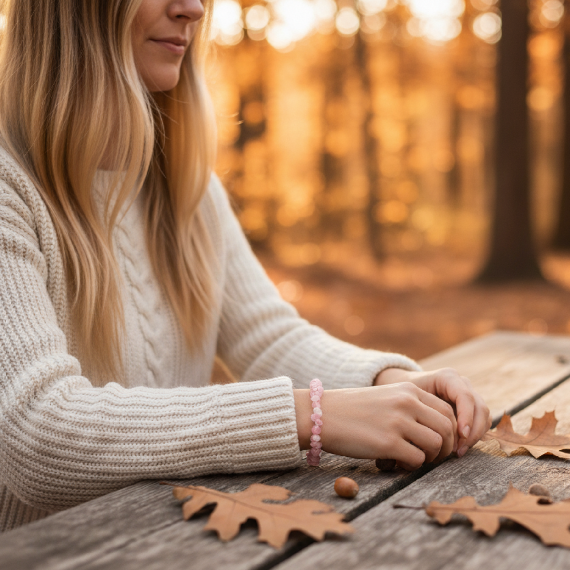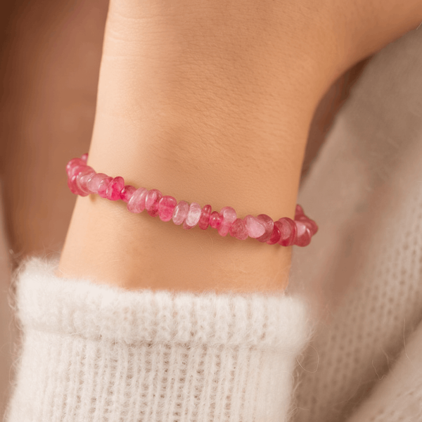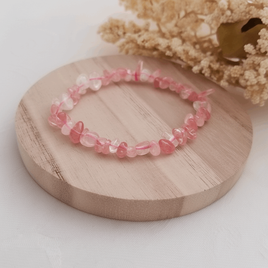 Bransoletka z kwarcu truskawkowego to talizman serca i harmonii. Naturalne kamienie w odcieniach różu emanują energią miłości, wdzięczności i radości, tworząc elegancką ozdobę, która wspiera emocjonalną równowagę każdego dnia.