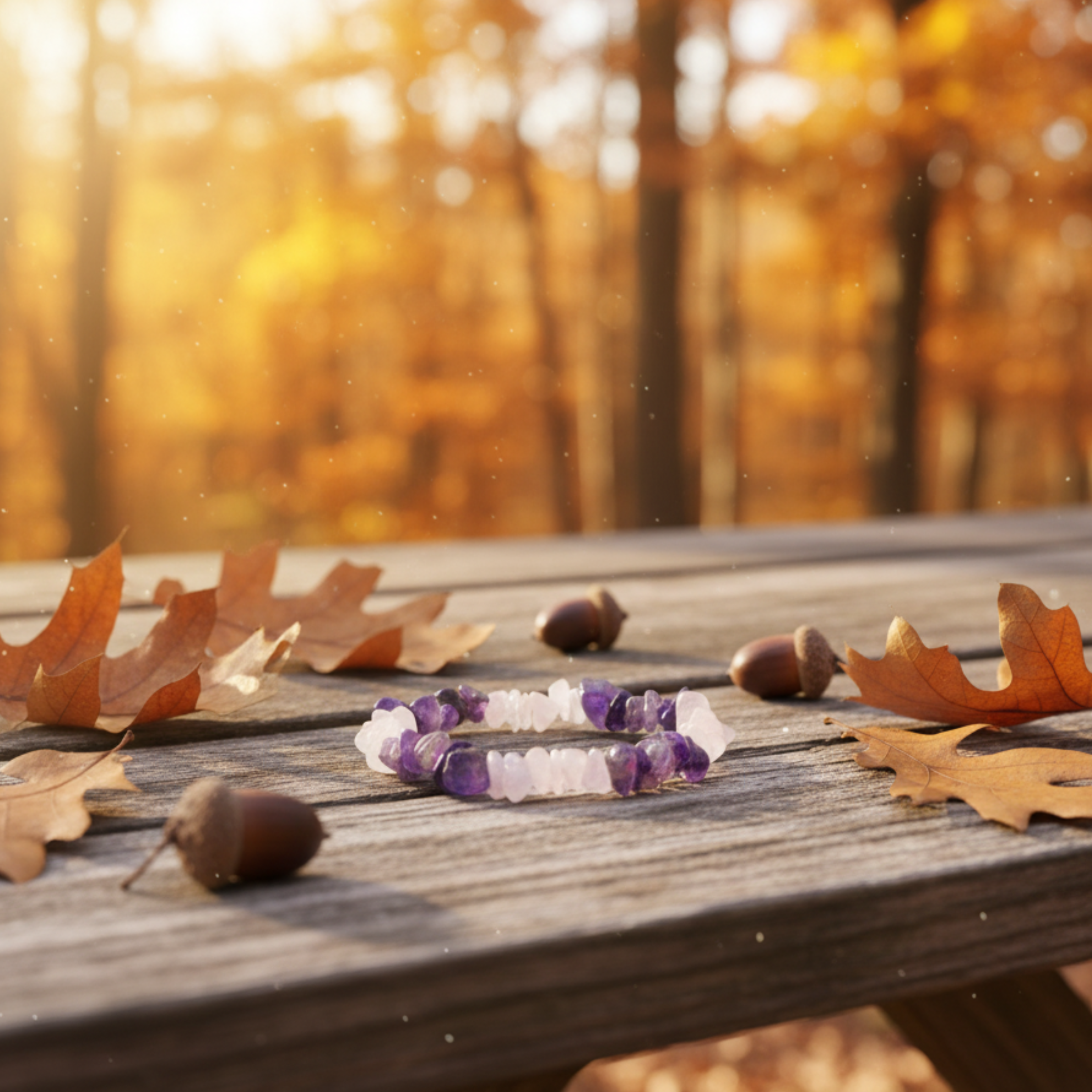 Różowy kwarc i ametyst nie tylko wzmacniają się nawzajem swoimi energiami, ale także wspierają emocjonalną równowagę, przyciągają pozytywne wibracje i promują duchowy rozwój. Noszenie tej bransoletki może pomóc w zwiększeniu poczucia miłości do siebie i innych, a także ochronić przed negatywnymi wpływami z zewnątrz.