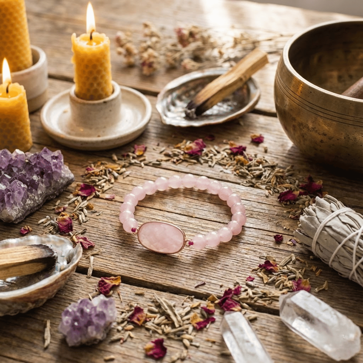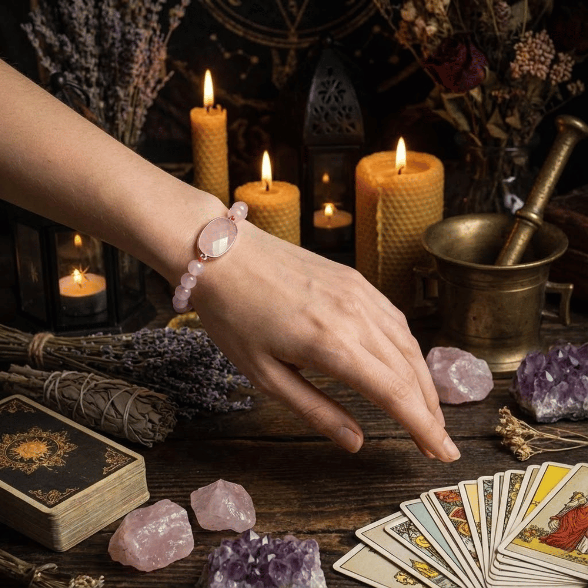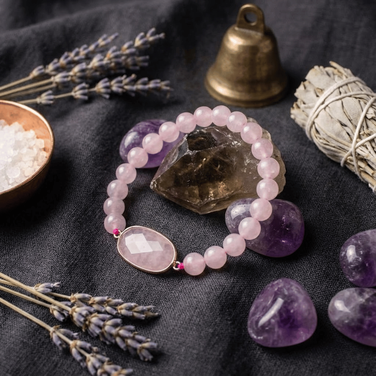 W tej wyjątkowej odsłonie – z dużym, centralnym kamieniem – różowy kwarc przestaje być tylko subtelnym szeptem. Staje się wyraźnym głosem, który oznajmia światu: „Zasługuję na wielką miłość”. Ta bransoletka to narzędzie potężnej manifestacji.