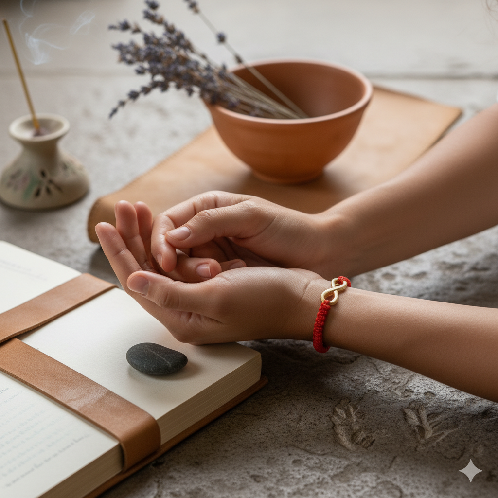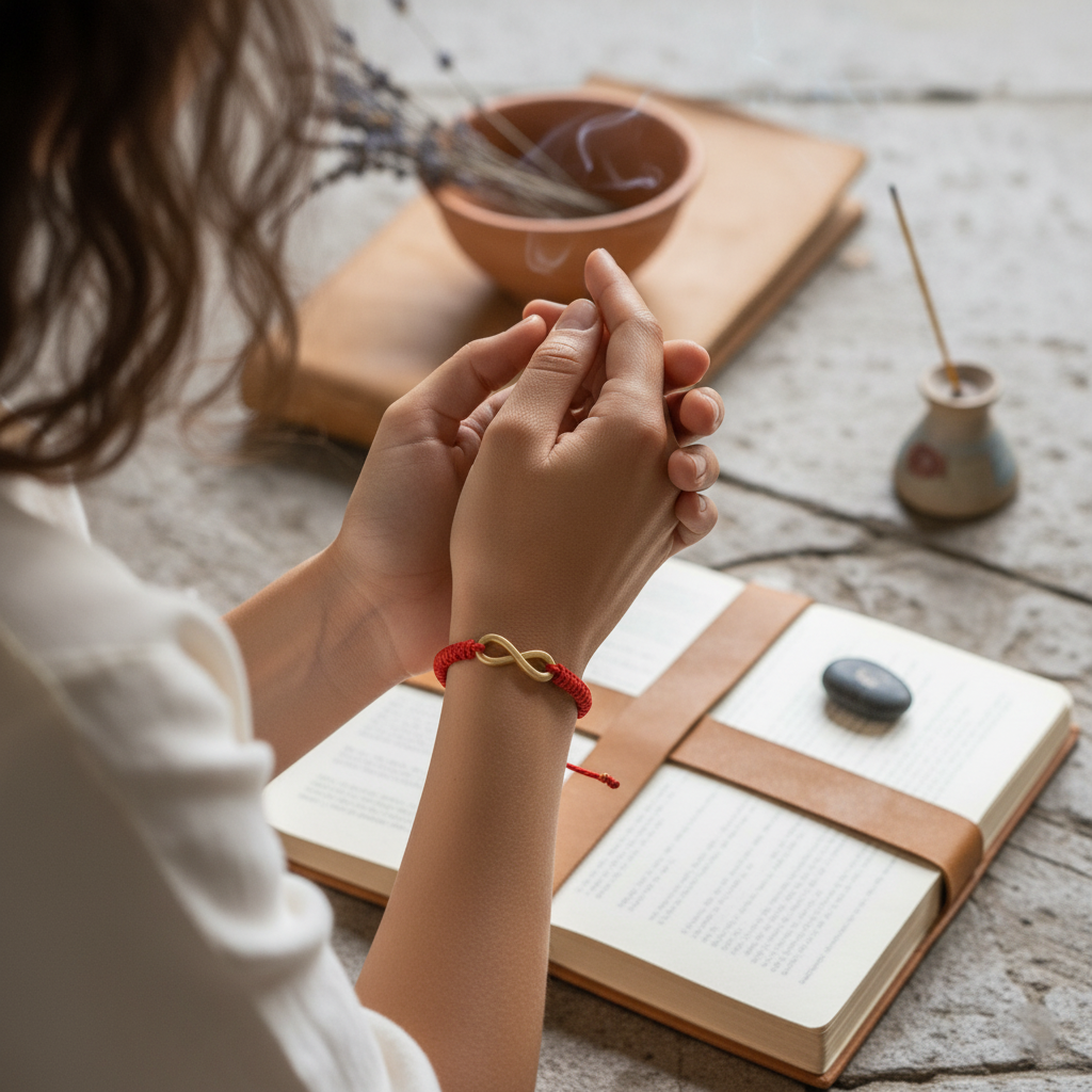 Niech czerwony sznurek chroni Cię, a złoty symbol nieskończoności przypomina każdego dnia, że energia miłości i dobra nigdy się nie kończy.