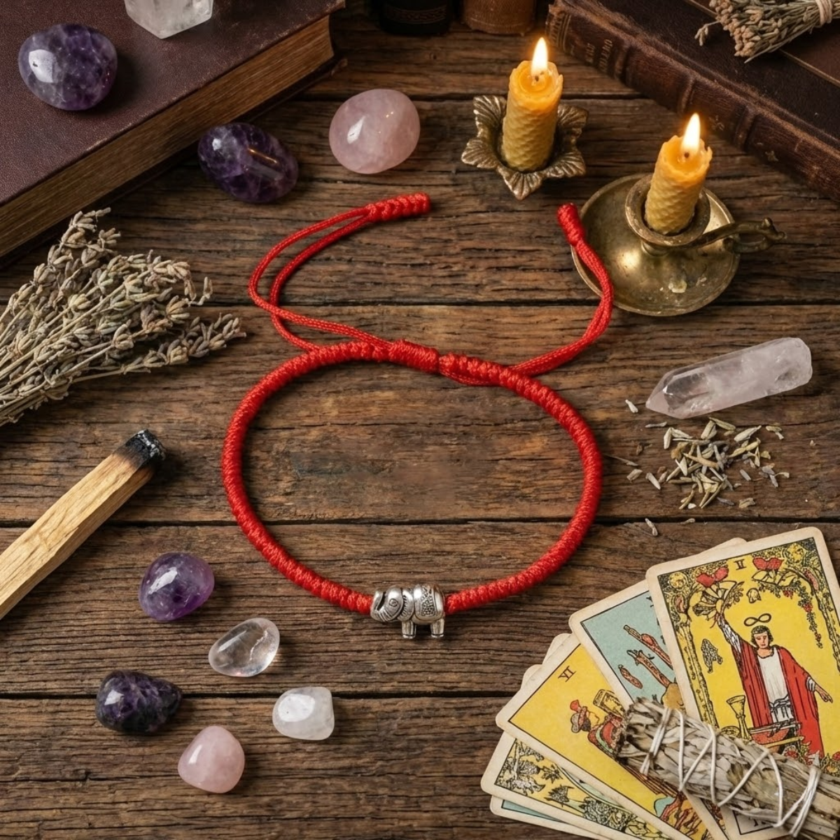 Ta czerwona sznurkowa bransoletka ze słoniem z trąbą w górę została stworzona jako amulet szczęścia i ochrony. Czerwony kolor od wieków uznawany jest za barwę życiowej siły, odwagi i ochrony przed złą energią, natomiast słoń jest jednym z najsilniejszych symboli pomyślności w wielu kulturach świata.