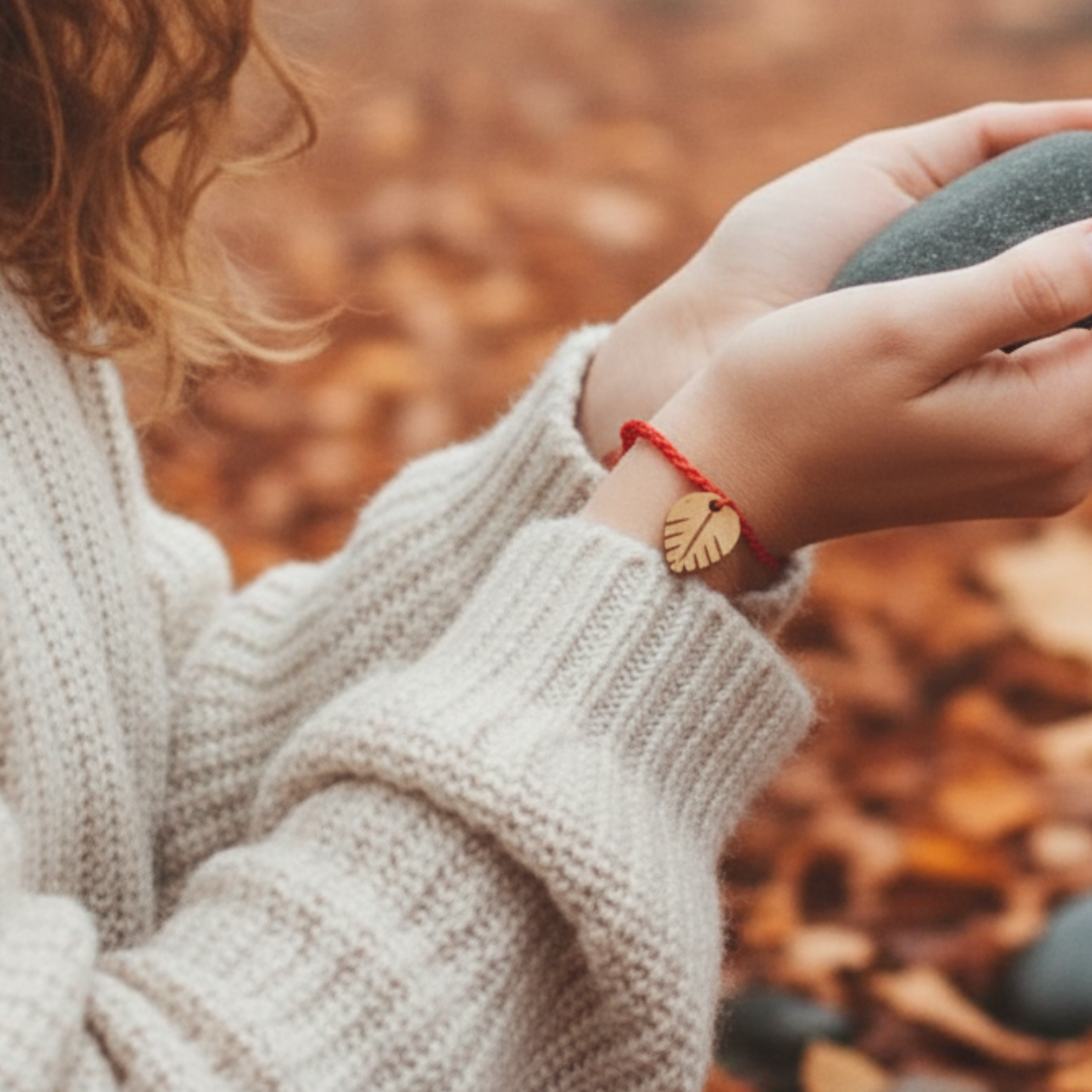 Zanurz się w harmonii natury i jej niezliczonych cudów z naszym wyjątkowym amuletem – czerwoną nitką z delikatnym liściem. Ten subtelny talizman jest odzwierciedleniem odnowy, wzrostu i nieustannej przemiany, które towarzyszą nam w każdym etapie życia.