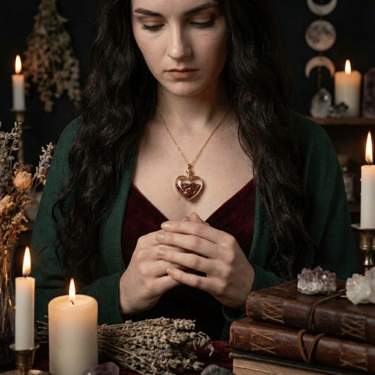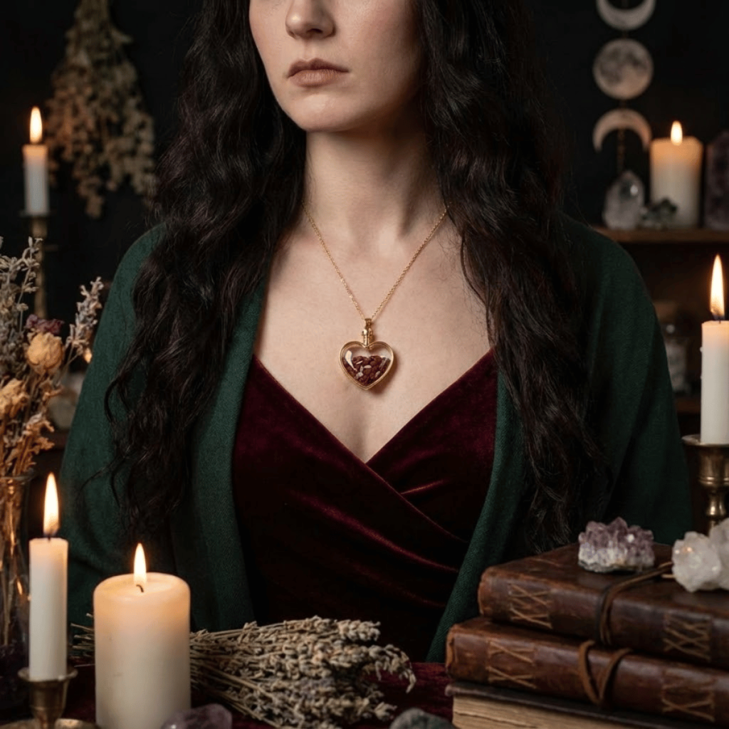 Traktuj ten wisiorek jak swoją tarczę i miecz w jednym. Złota rama chroni, a czerwone wnętrze walczy. Zakładaj go, gdy czujesz się niewidzialna lub gdy strach paraliżuje Twoje działania. Poczuj ciężar tego serca i usłysz chrzęst kamieni – to dźwięk Twojej budzącej się mocy.