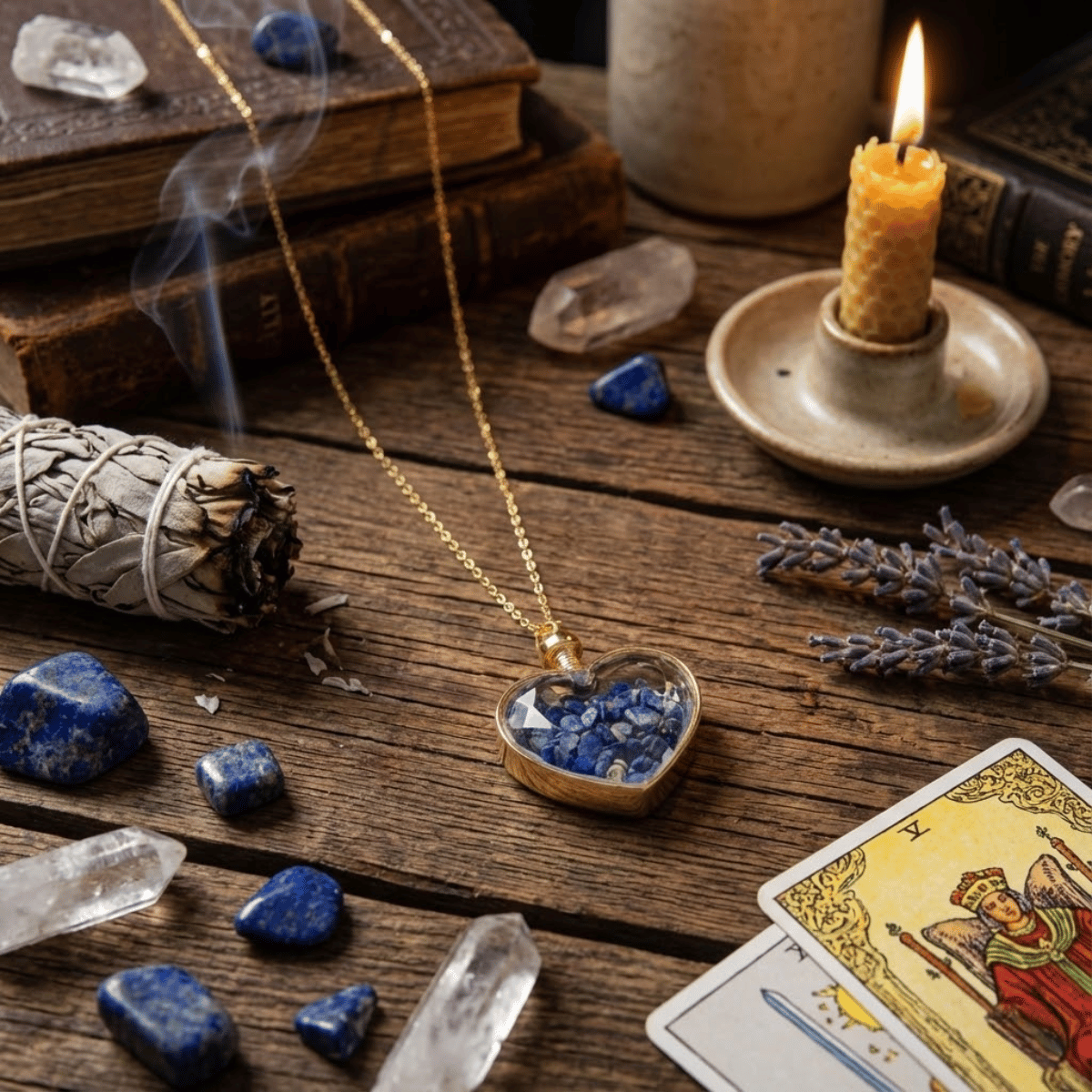 Twoja intencja skierowała energię tego serca do Czakry Trzeciego Oka. To potężne połączenie. Mimo że wisiorek leży na klatce piersiowej, jego wibracja „ciągnie” w górę, do punktu między brwiami. Lapis Lazuli to klasyczny kamień Trzeciego Oka. Jeśli zajmujesz się pracą z kartami (Tarot, Wyrocznie), ten amulet jest dla Ciebie kluczowy. Działa jak „soczewka” – wyostrza intuicję i pozwala dostrzec ukryte znaczenia symboli. Chroni też Twoją energię podczas sesji dywinacyjnych.