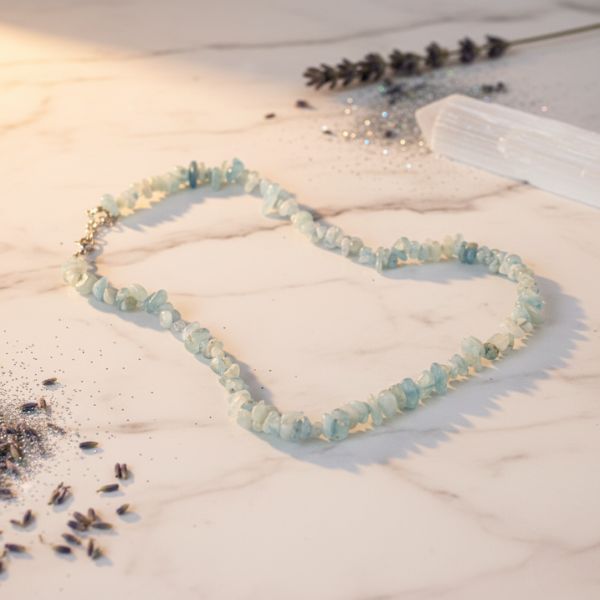 Zanurz się w spokoju oceanu, jaki niesie ze sobą naszyjnik z akwamarynu – subtelny i pełen światła dodatek, który emanuje łagodnością i harmonią. Akwamaryn, nazywany często kamieniem odwagi i prawdy, wspiera wewnętrzny spokój, ułatwia wyrażanie emocji oraz wzmacnia intuicję. Jego chłodny, błękitny odcień przypomina o sile ciszy i klarowności myśli, czyniąc go idealnym wyborem dla osób szukających równowagi i jasnej komunikacji. Doskonały również jako prezent z intencją, który niesie ze sobą przesłanie zaufania, ochrony i nowego początku. Niech ten naszyjnik będzie Twoim codziennym towarzyszem, przynoszącym ukojenie, autentyczność i świeżość, a jednocześnie dodającym delikatnej elegancji każdemu dniu.