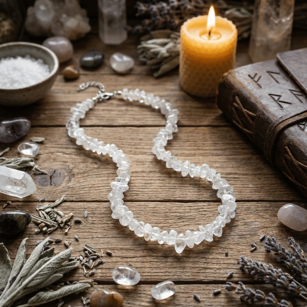 Traktuj ten naszyjnik jak osobisty filtr HEPA dla duszy. Każdy z tych małych, surowych kawałków kwarcu wyłapuje dysonanse z otoczenia i neutralizuje je. Jest niezastąpiony w tłumie, w trudnym środowisku pracy lub gdy czujesz, że „łapiesz” nastroje innych. Z nim Twoja energia pozostaje wyłącznie Twoja.