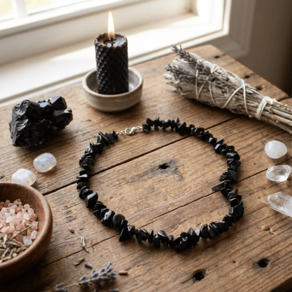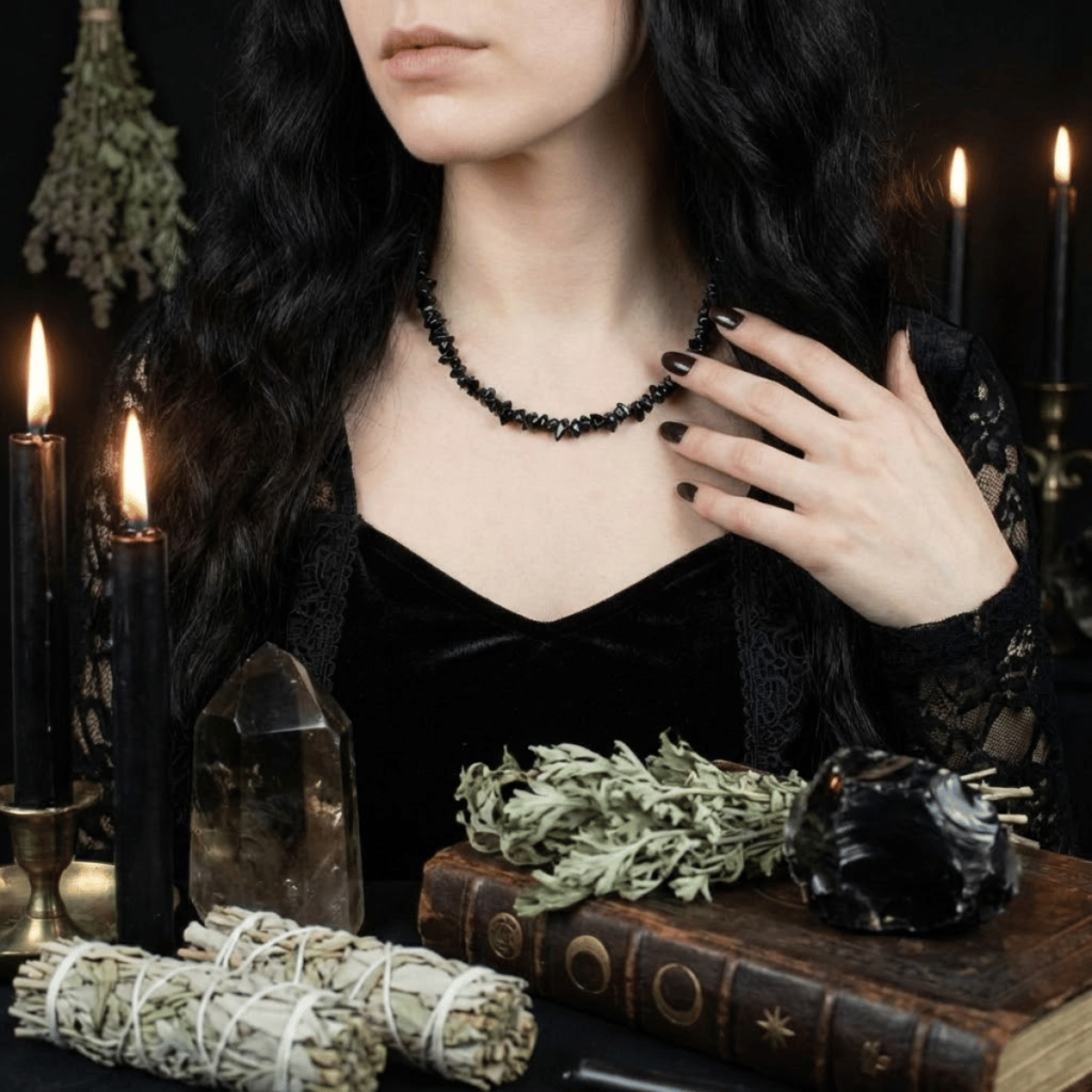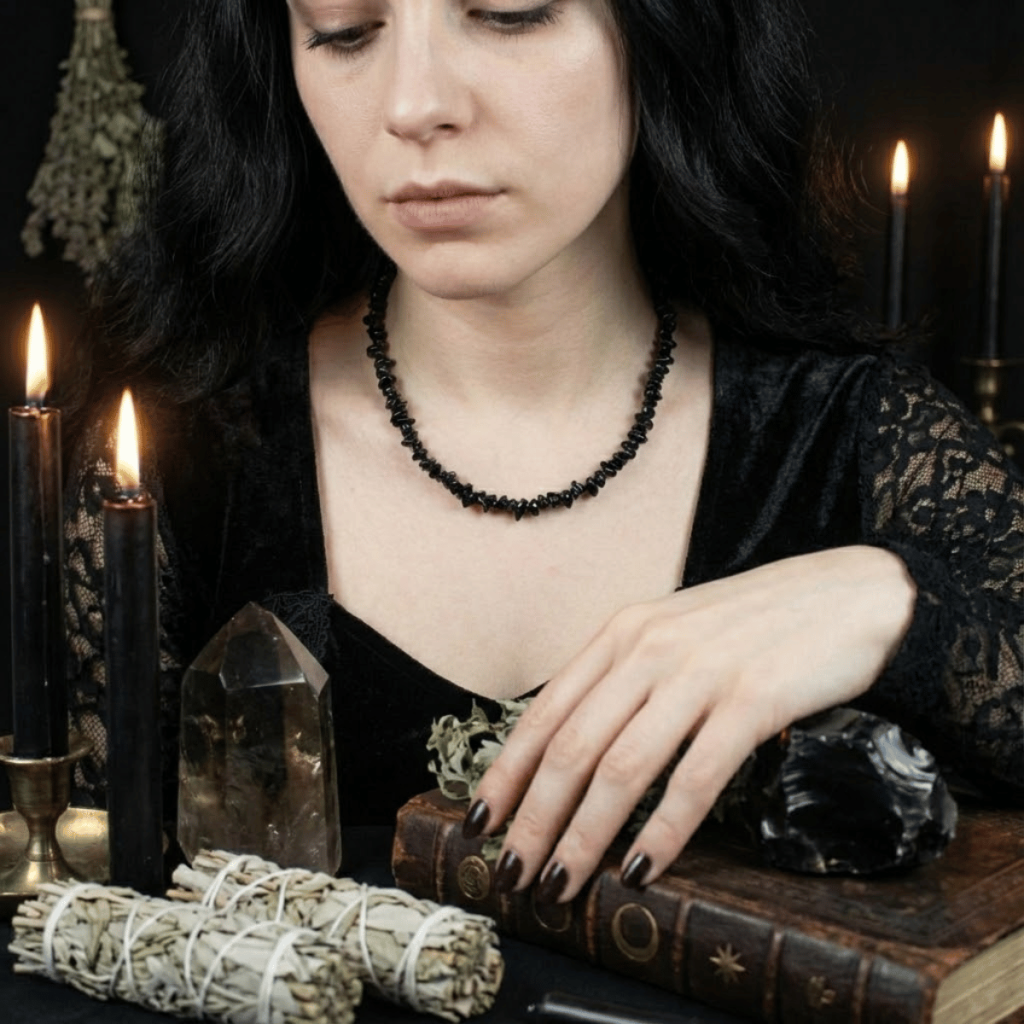 Ten naszyjnik to Twój osobisty ochroniarz energetyczny. Wykonany z surowych okruchów czarnego Obsydianu, prezentuje się na szyi jak elegancki, mroczny wieniec. To wulkaniczne szkło, zrodzone w ogniu i zastygłe w ziemi, łączy w sobie pierwotną moc żywiołów. Jest to talizman dla Kobiety, która nie boi się swojej siły, stawia granice i pragnie czuć się bezpiecznie w każdej sytuacji.