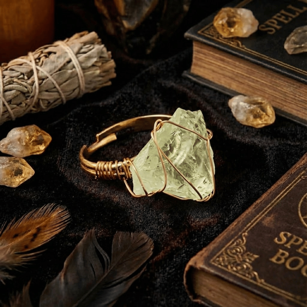 Wyobraź sobie ten pierścionek jako pryzmat. Wszystko, co ciężkie, smutne czy mroczne, w zderzeniu z jego limonkowym blaskiem zostaje natychmiast rozproszone. On nie tylko chroni, on „dezynfekuje” Twoją aurę z cudzych emocji i Twoich własnych, natrętnych myśli. To Twój osobisty strażnik czystości umysłu – noś go, by czuć się lekko, świeżo i bezpiecznie we własnym świetle.