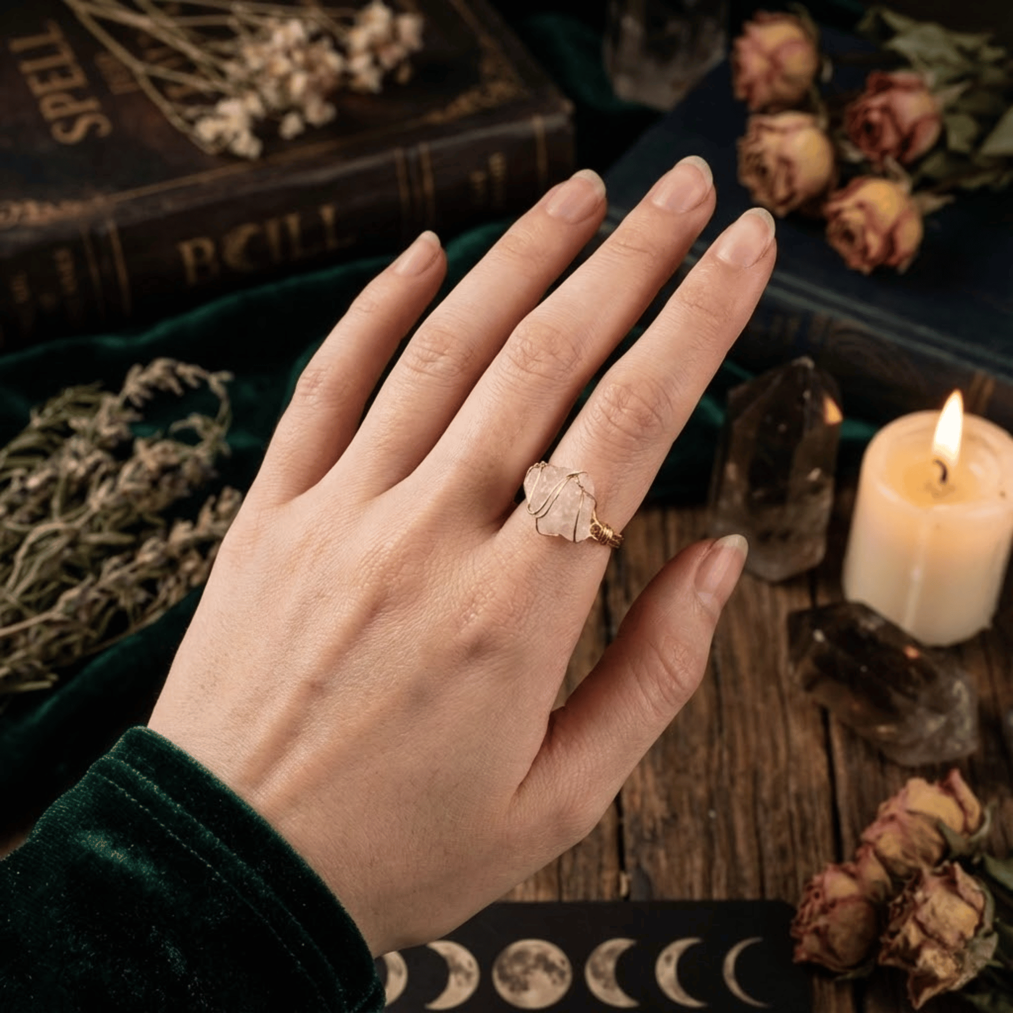 Ten pierścionek to manifestacja uczucia w jego najbardziej pierwotnej, naturalnej formie. W przeciwieństwie do szlifowanych kamieni, ten surowy Różowy Kwarc zachował kształt, jaki nadała mu Matka Ziemia. Jest nieregularny, unikalny i pełen charakteru – dokładnie tak jak Ty. Opleciony złotym drucikiem, wygląda jak starożytny artefakt znaleziony w zaczarowanym lesie. To talizman dla kobiety, która kocha swoją dziką naturę i nie przeprasza za to, że jest prawdziwa.