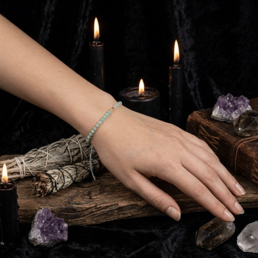 W tej konfiguracji delikatna bransoletka staje się czymś więcej niż tylko ukojeniem – staje się soczewką, przez którą patrzysz na świat. Jej energia została tu ukierunkowana na oczyszczenie umysłu, byś mogła widzieć i czuć więcej, ale bez lęku i napięcia.