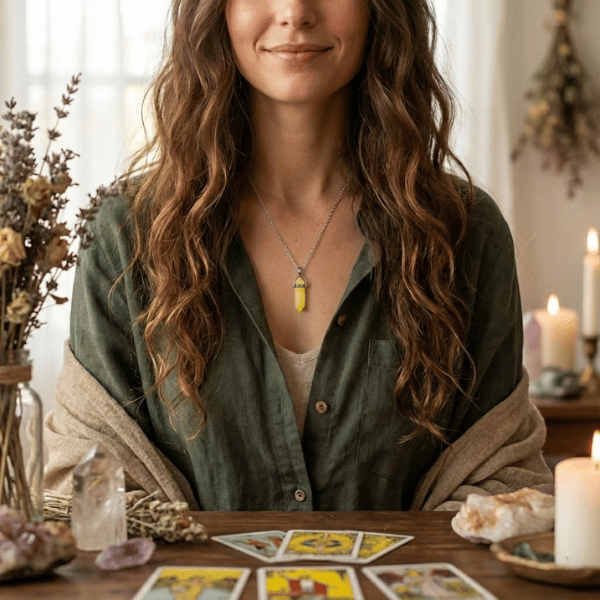Twoja intencja trafiła w samo sedno – do Czakry Splotu Słonecznego. To dom Twojej woli i osobistej mocy. Cytryn jest najsilniejszym kamieniem tej czakry. Kiedy Twoja intencja to pieniądze i sukces, Splot Słoneczny musi działać bez zarzutu. Ten wisiorek “rozpuszcza” w nim blokady takie jak: lęk przed porażką, syndrom oszusta czy poczucie bycia niewystarczającą. Rozświetla Twoje wnętrze złotym blaskiem, dając Ci charyzmę, której nie można się oprzeć podczas negocjacji czy sprzedaży.