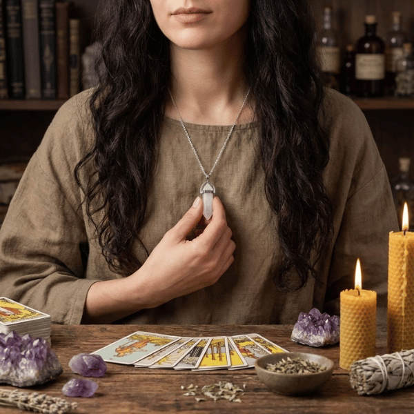 Twoja intencja skierowała energię prosto do Czakry Korony. To najwyższy punkt energetyczny człowieka. Kryształ Górski w formie szpicu działa tu jak antena. Jeśli Twoją intencją jest praca z kartami (Tarot, Wyrocznie), ten wisiorek jest absolutnie niezbędny. Trzymając go w dłoni przed tasowaniem kart, “zerujesz” swoją energię. Sprawiasz, że stajesz się czystym kanałem, przez który przepływają informacje, niezakłócone przez Twoje własne lęki czy nadzieje. To narzędzie, które zmienia wróżbę w proroctwo.
