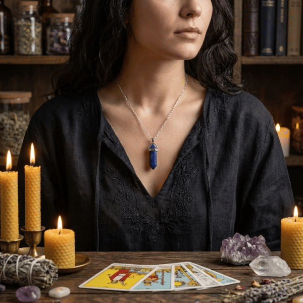 Stworzony przez nas wisiorek jest niezwykle uniwersalny. Niebieski kamień oraz delikatny łańcuszek sprawiają, że idealnie sprawdzi się zarówno do codziennych stylizacji jak i do bardziej eleganckich, wieczorowych kreacji. Naszyjnik będzie idealnym prezentem dla Ciebie samej, albo dla bliskiej Ci osoby, która interesuje się duchowością i właściwościami kamieni naturalnych.