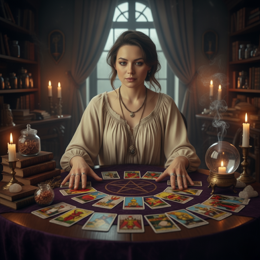 W tej ciszy nici symboli splatają się z Twoim zamiarem, a energia porządkuje się bez pośpiechu. Ty nie musisz nigdzie jechać ani nic udowadniać — zostajesz u siebie, w miękkości własnego rytmu. Ja czuwam, utrzymując krąg: oczyszczam przestrzeń, stawiam ochronę, zapalam światło prowadzące.